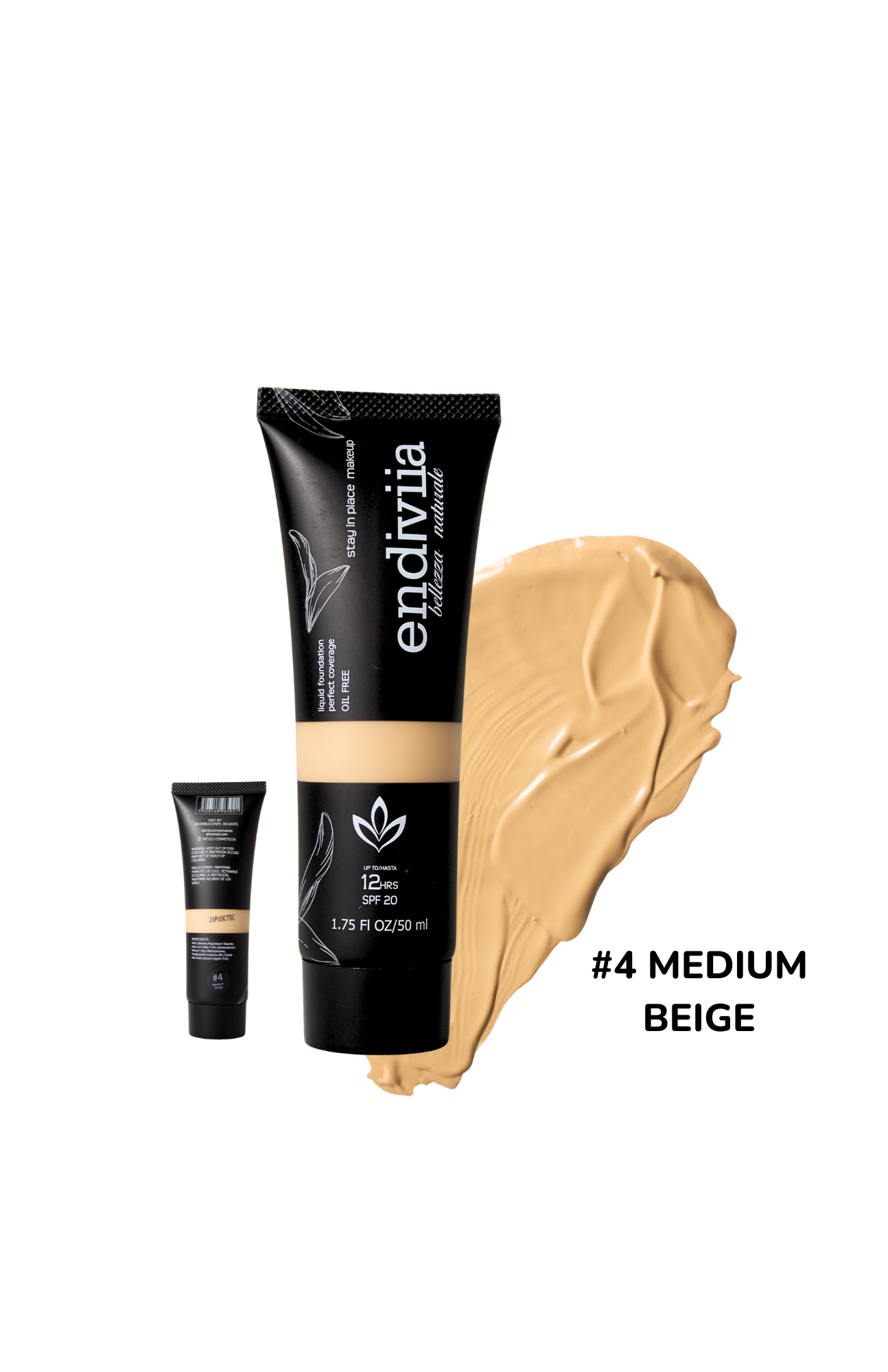 Maquillaje líquido tono Medium Beige con acabado mate natural. Controla el brillo sin resecar y unifica el tono de la piel con efecto profesional.