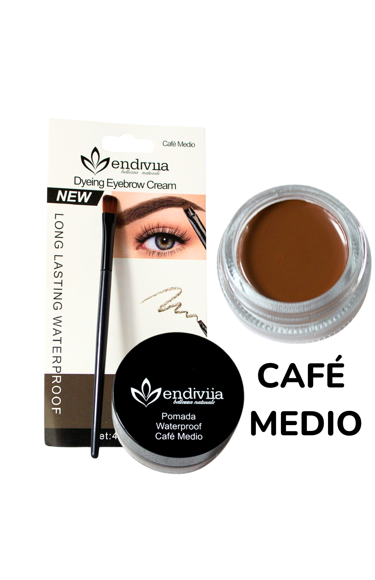 Delineador en pomada café medio con acabado mate. Textura cremosa de fácil deslizamiento y fijación prolongada. Incluye brocha profesional.